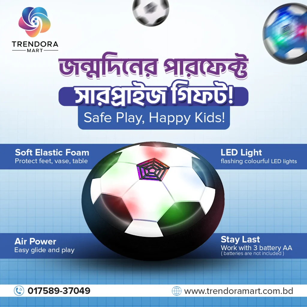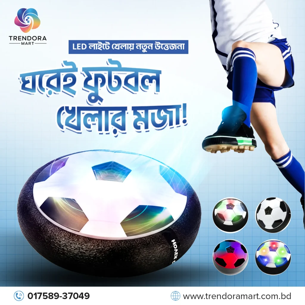 শক্তিশালী ফ্যান বলটিকে বাতাসে ভাসিয়ে রাখে, যেন আসল ফুটবল খেলার অনুভূতি দেয়।